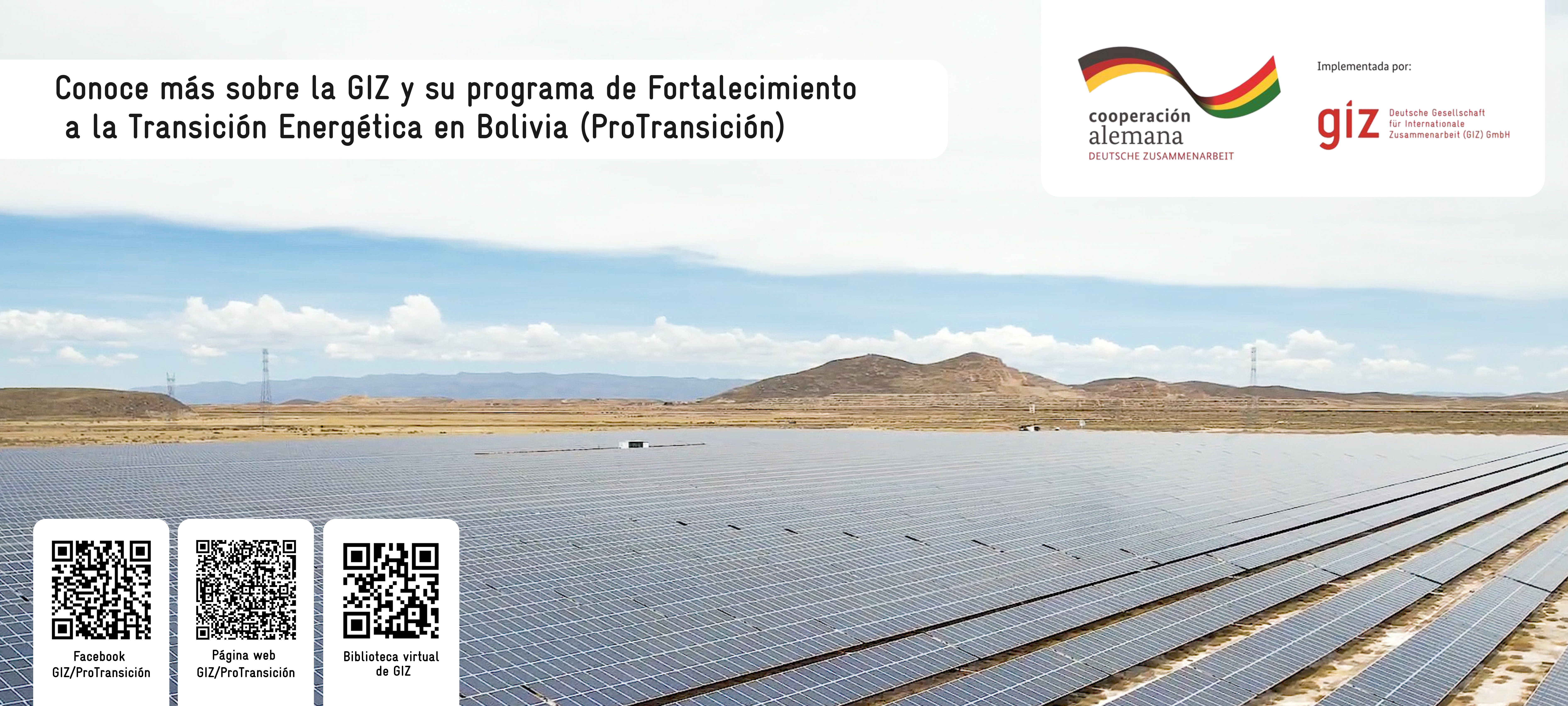ProTransición es un programa de la Cooperación Alemana, implementado por la GIZ en Bolivia, que brinda asistencia técnica para el sector eléctrico boliviano. El programa se implementa en colaboración con el Ministerio de Hidrocarburos y Energías (MHE) a través del Viceministerio de Electricidad y Energías Renovables (VMERR). Su objetivo principal es mejorar las condiciones financieras, organizativas y técnicas para promover una transformación energética del sector, en favor de un futuro más sostenible e inclusivo, a través de cinco componentes.