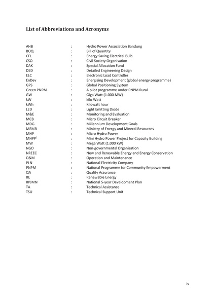 English: This Best Practice Guideline shall be seen as a supplement to existing technical, financial, and administrative guidelines and although it will be particularly useful to stakeholders that are new to MHP for rural electrification, there is plenty of sound advice and good practices for the more experienced stakeholders. The Best Practice Guideline can be read in its entirety as a simple text book or it can be used as a manual to provide insights for specific topics and processes.