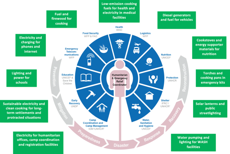 Efforts to strengthen energy coordination in the Cluster System began with the establishment of the Safe Access to Fuel and Energy (SAFE) in Humanitarian Settings Working Group in 2007 to improve coordination, knowledge sharing, and research on fuel and energy needs for conflict-affected populations.[5] The Moving Energy Initiative (MEI), which ran from 2014 to 2018, was established to produce research and raise awareness about the importance of humanitarian energy policy and practice.[6]
