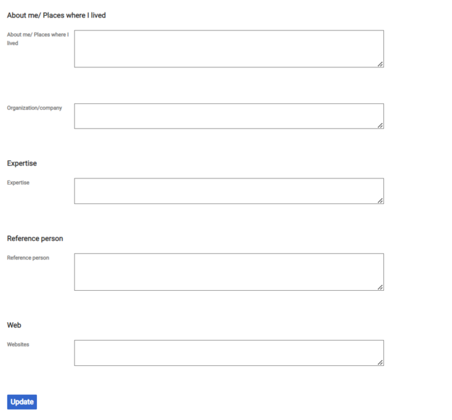 NOTE: Make sure to click "Update" to save your information before you click on other tabs, otherwise you will lose your changes.